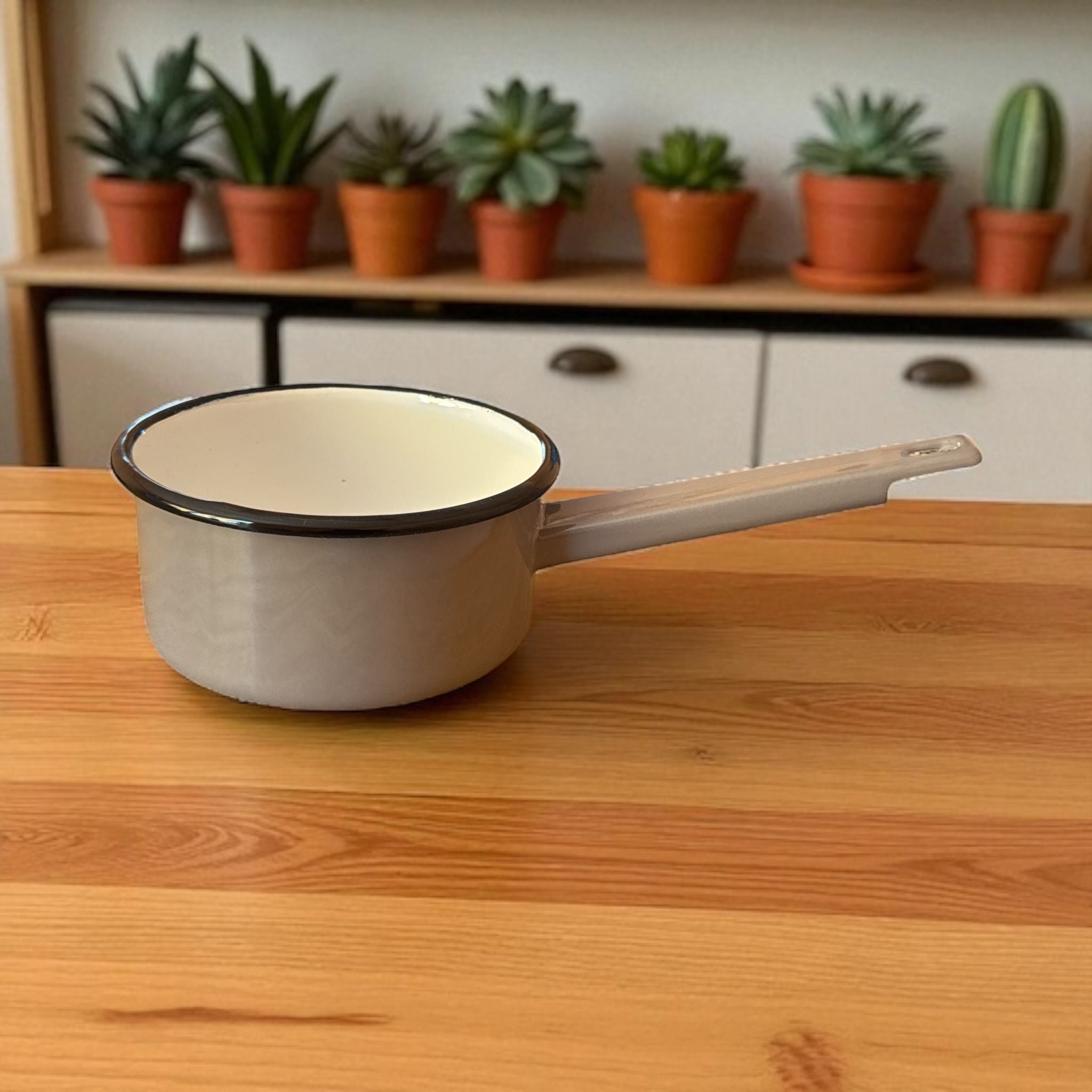 Cratiță Emailată cu Coada 1L – Simplitate și Eleganță în Bucătăria Ta