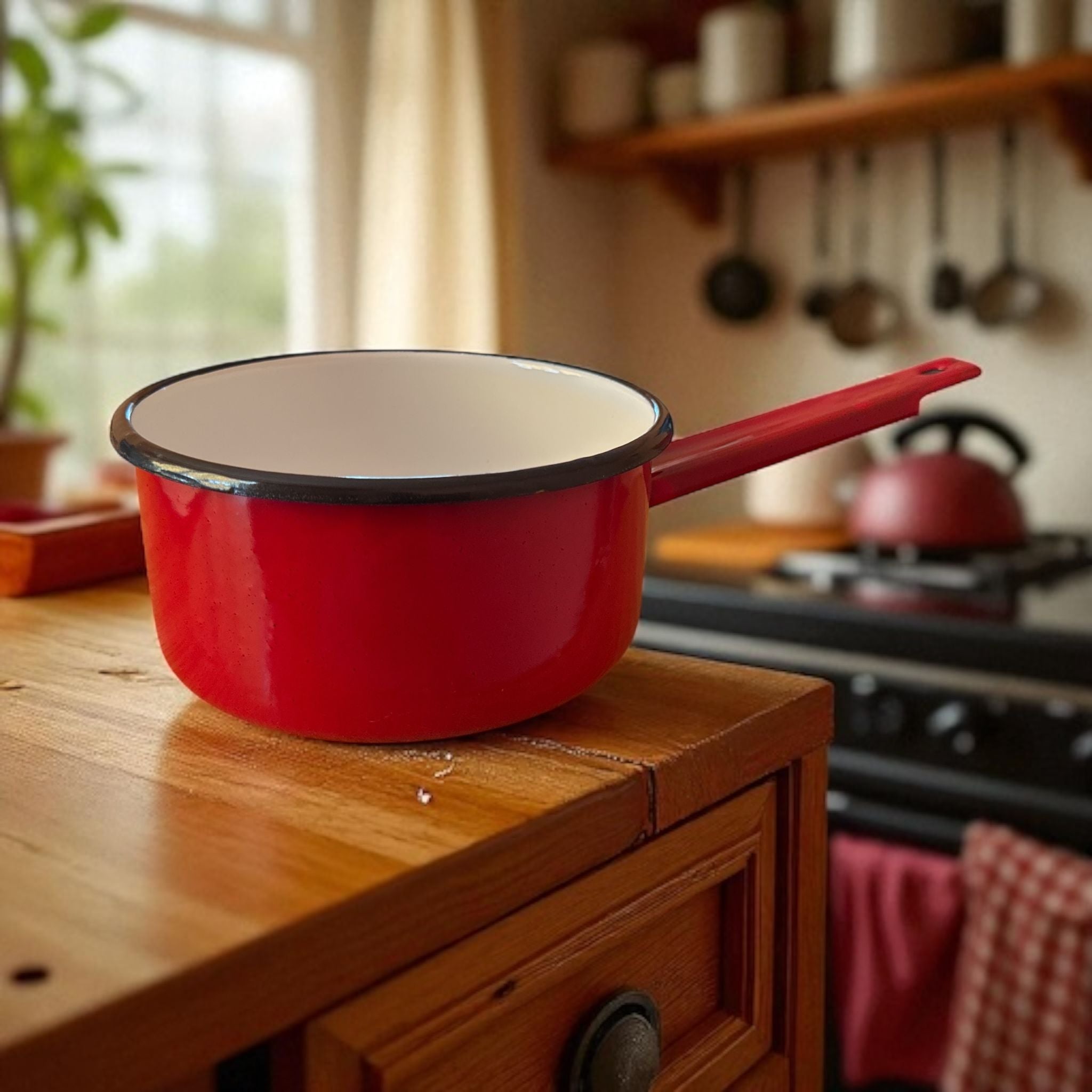 Cratiță Emaileată cu Coada – 2L, Roșu Intens