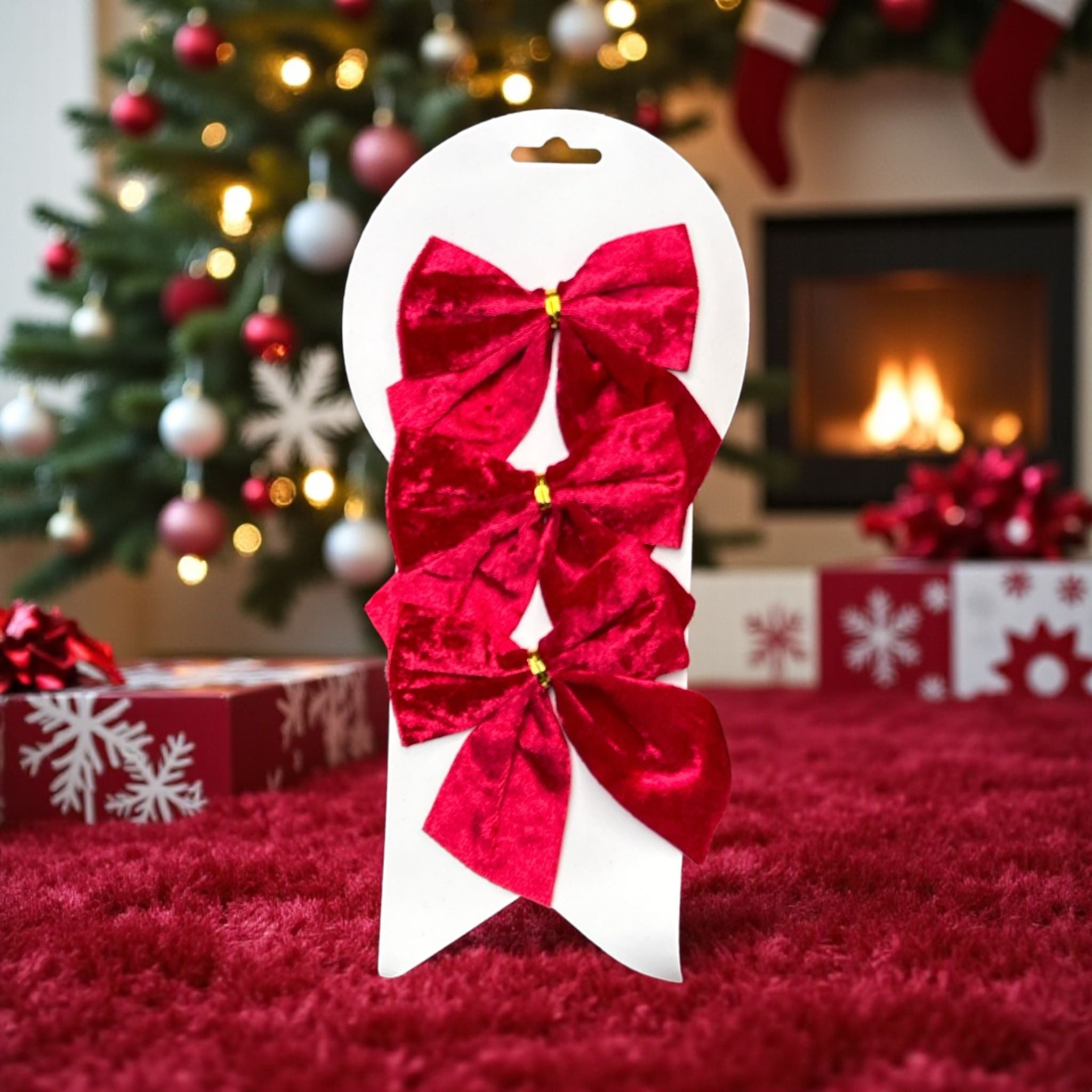 🎀 Set 3 Funde Roșii din Catifea – Decor Crăciun pentru Brad, Cadouri și Aranjamente 🎀