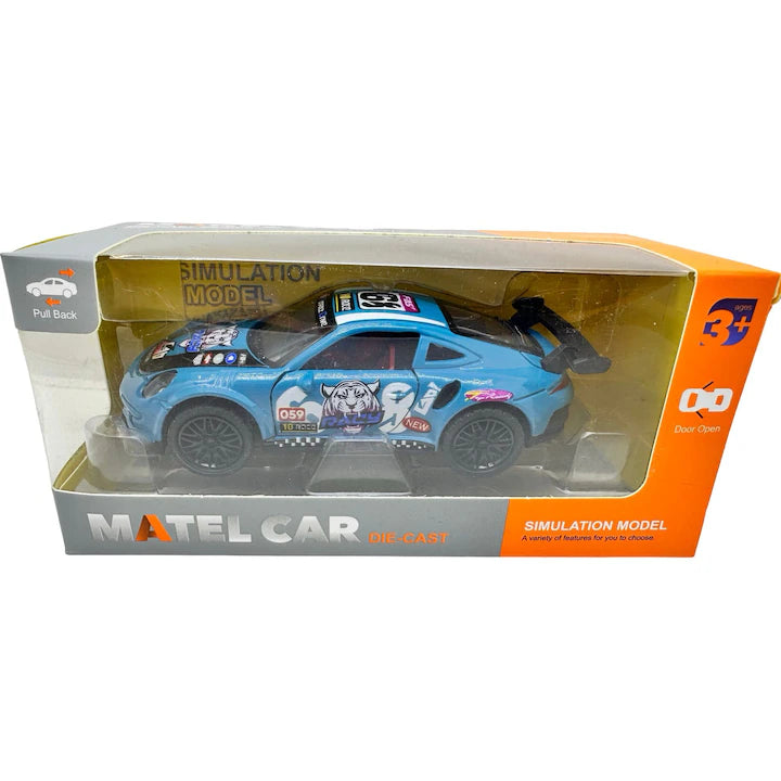🚗 Mașinuță Porsche Racing Albastră – Metal Die-Cast 1:38, Uși Deschise, Sistem Pull-Back – Model Sport