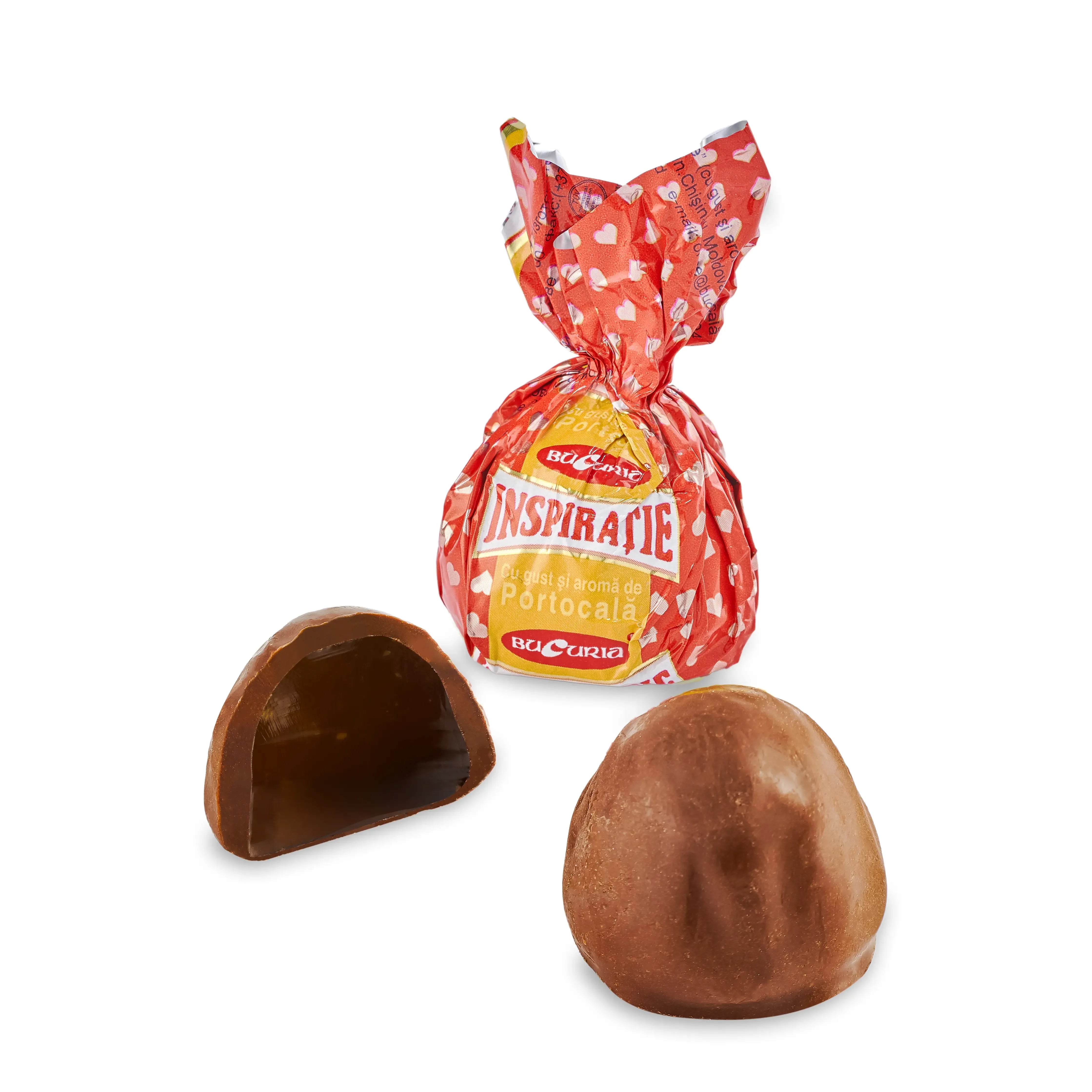 Savurează Bomboanele Bucuria – Inspirație Portocală, un desert vibrant, cu glazură fină de ciocolată și umplutură moale, aromată, cu gust intens de portocală. Combinația dintre ciocolată și nota fresh, citrică, creează o experiență dulce, energizantă și plină de prospețime 🍫🍊.