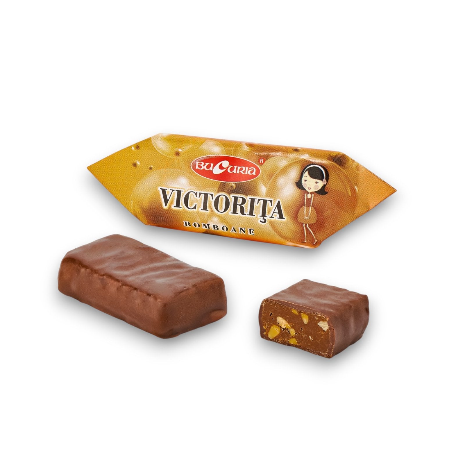 Descoperă savoarea delicată și echilibrată a bomboanelor Bucuria – Victorița, un desert clasic cu aromă bogată și textură plăcută. Aceste bomboane combină un interior fin, ușor crocant, cu bucăți de nuci/fructe uscate, toate învelite într-o glazură gustoasă de ciocolată.