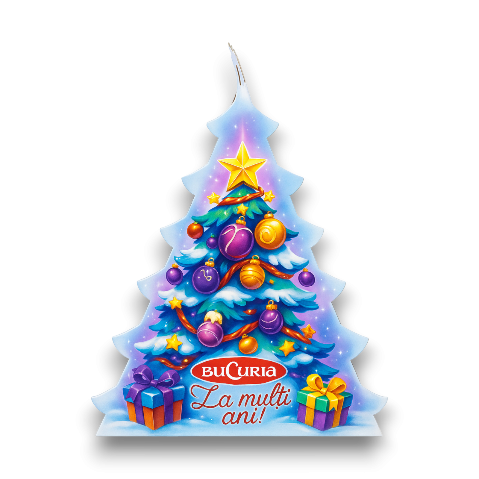 Transformă spiritul sărbătorilor într-un cadou memorabil cu Cutia Cadou „Brăduțul Bucuria” – o ediție specială festivă, sub formă de brad colorat, plin cu bomboane delicioase Bucuria.