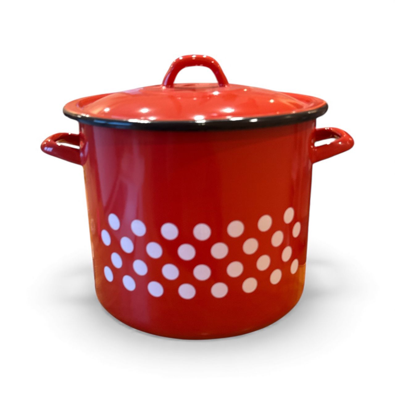 - 🍲 Oală Emailată cu Capac – Roșie cu Buline – Disponibilă în 4 Mărimi (2,5 L / 4 L / 8 L / 9,5 L) 🍲 Oală Emailată cu Capac – Roșie cu Buline – Disponibilă în 4 Mărimi (2,5 L / 4 L / 8 L / 9,5 L)