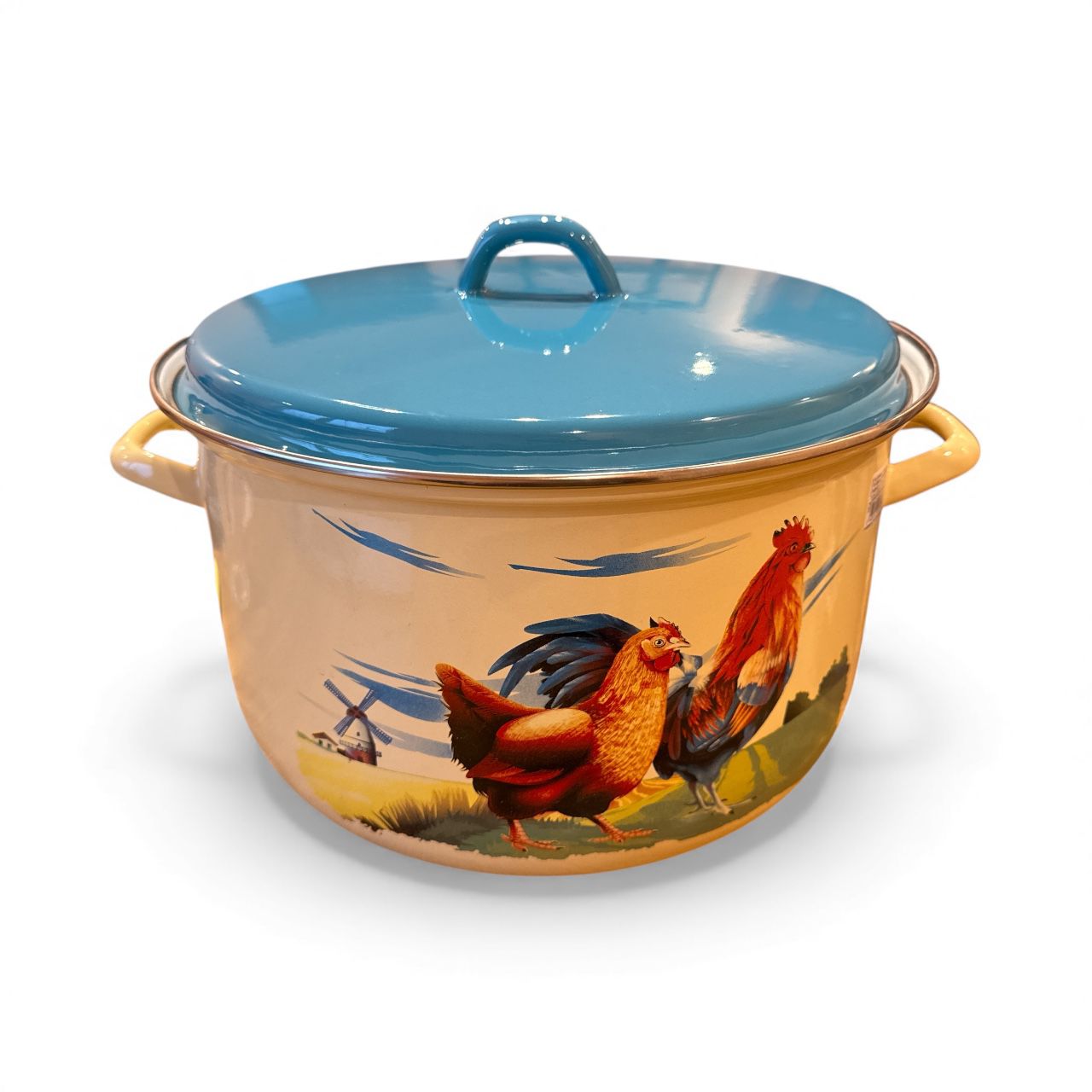 - 🍲 Oală Emailată Joasă cu Decor Găini & Cocoș – 30 cm, 10 Litri, cu Capac – Fabricată în România 🍲 Oală Emailată Joasă cu Decor Găini & Cocoș – 30 cm, 10 Litri, cu Capac – Fabricată în România