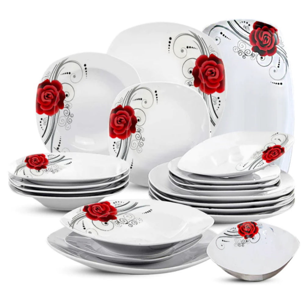 - 🌹✨ Serviciu de masă din porțelan Art Craft – 18 piese – Model Trandafir Roșu – Eleganță și rafinament la fiecare masă 🌹✨ Serviciu de masă din porțelan Art Craft – 18 piese – Model Trandafir Roșu – Eleganță și rafinament la fiecare masă
