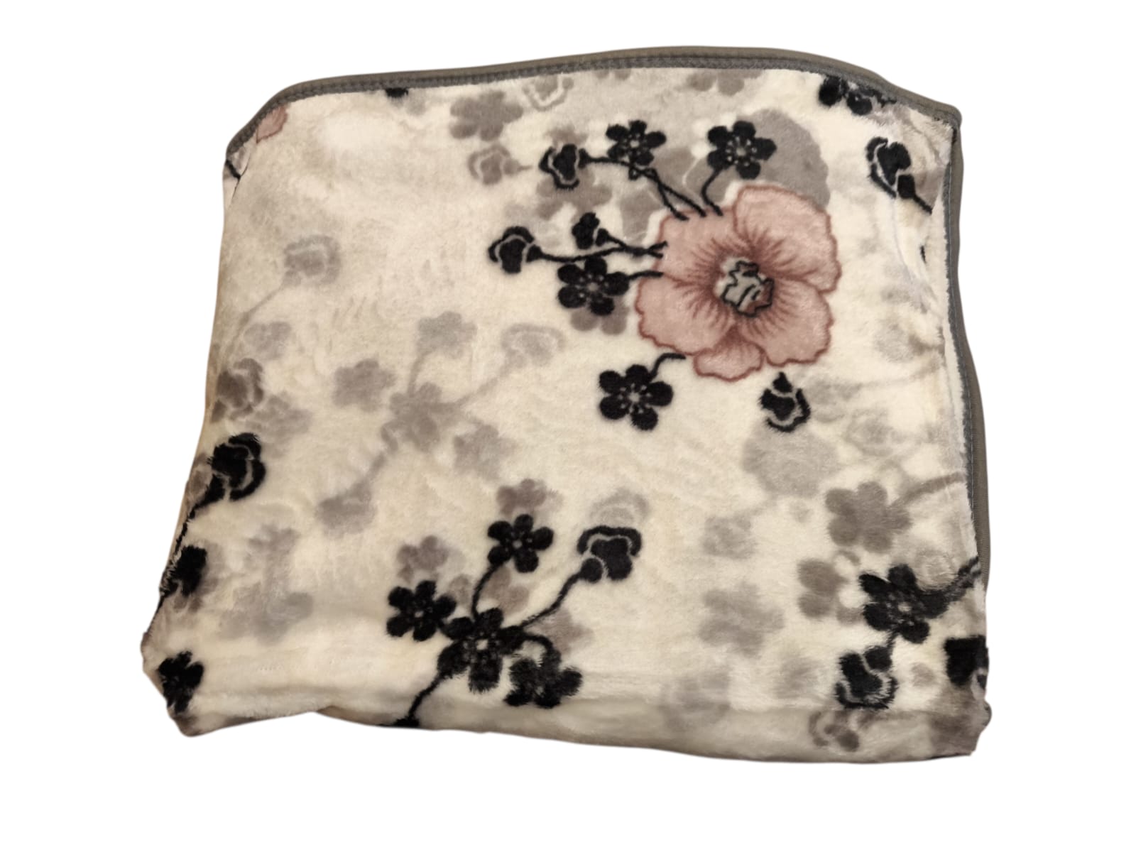 🌸 Pătură simplă groasă 150x230 cm – model floral crem-gri 🤍 Moale, elegantă și călduroasă ☕