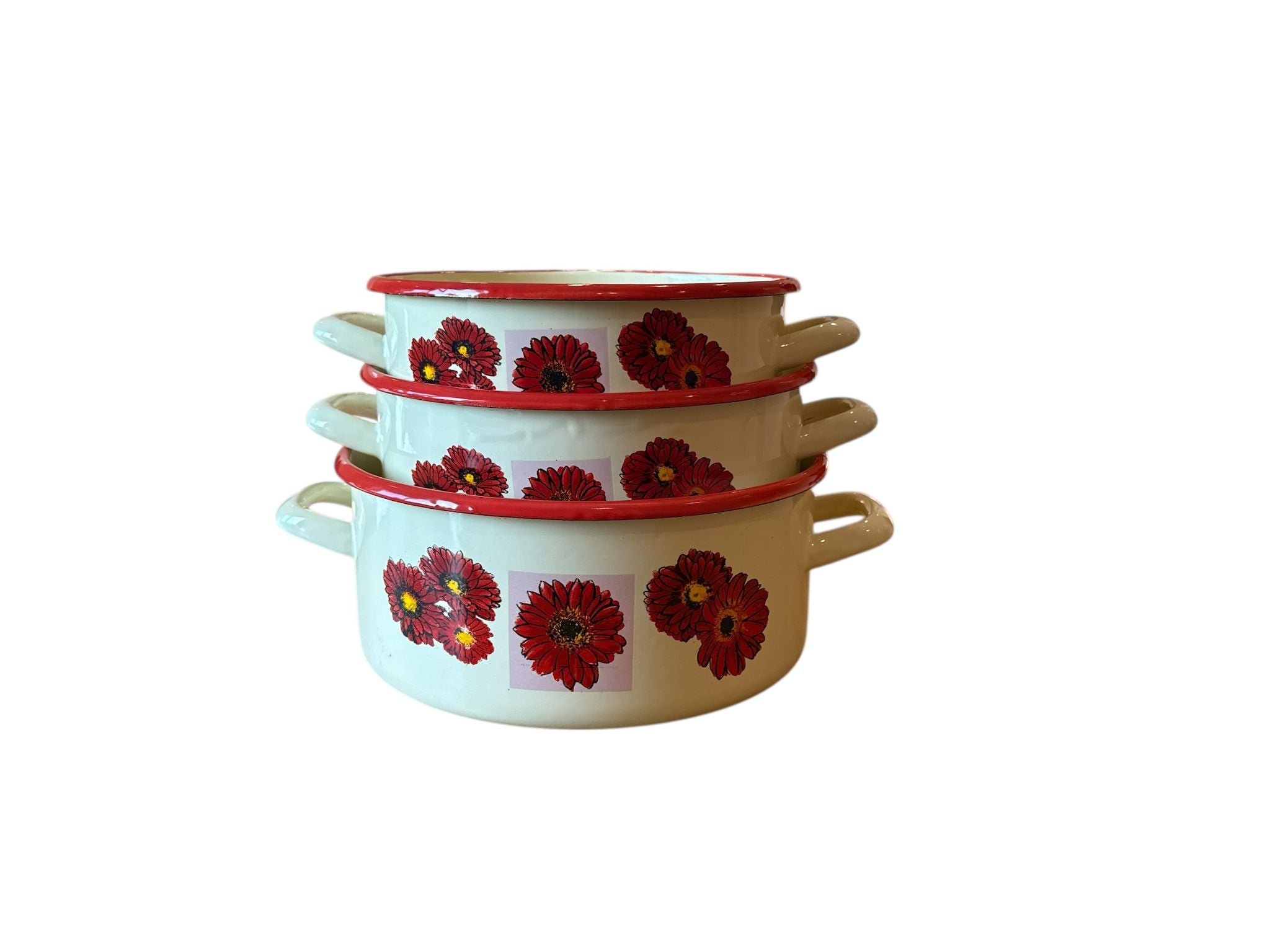 🌺 Set 3 Cratițe din Oțel Emailat – 20/22/24 cm – Model Floral, Durabile și Elegante 🌺