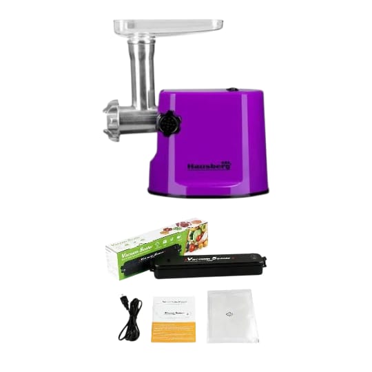 Acest pachet combină două aparate indispensabile pentru orice gospodărie sau atelier mic de prelucrare: o mașină puternică de tocat carne și un aparat performant pentru sigilare şi vidare. Ideal pentru preparate din carne proaspătă, cârnați, burgeri sau porționarea și păstrarea alimentelor cu prospețime maximă.
