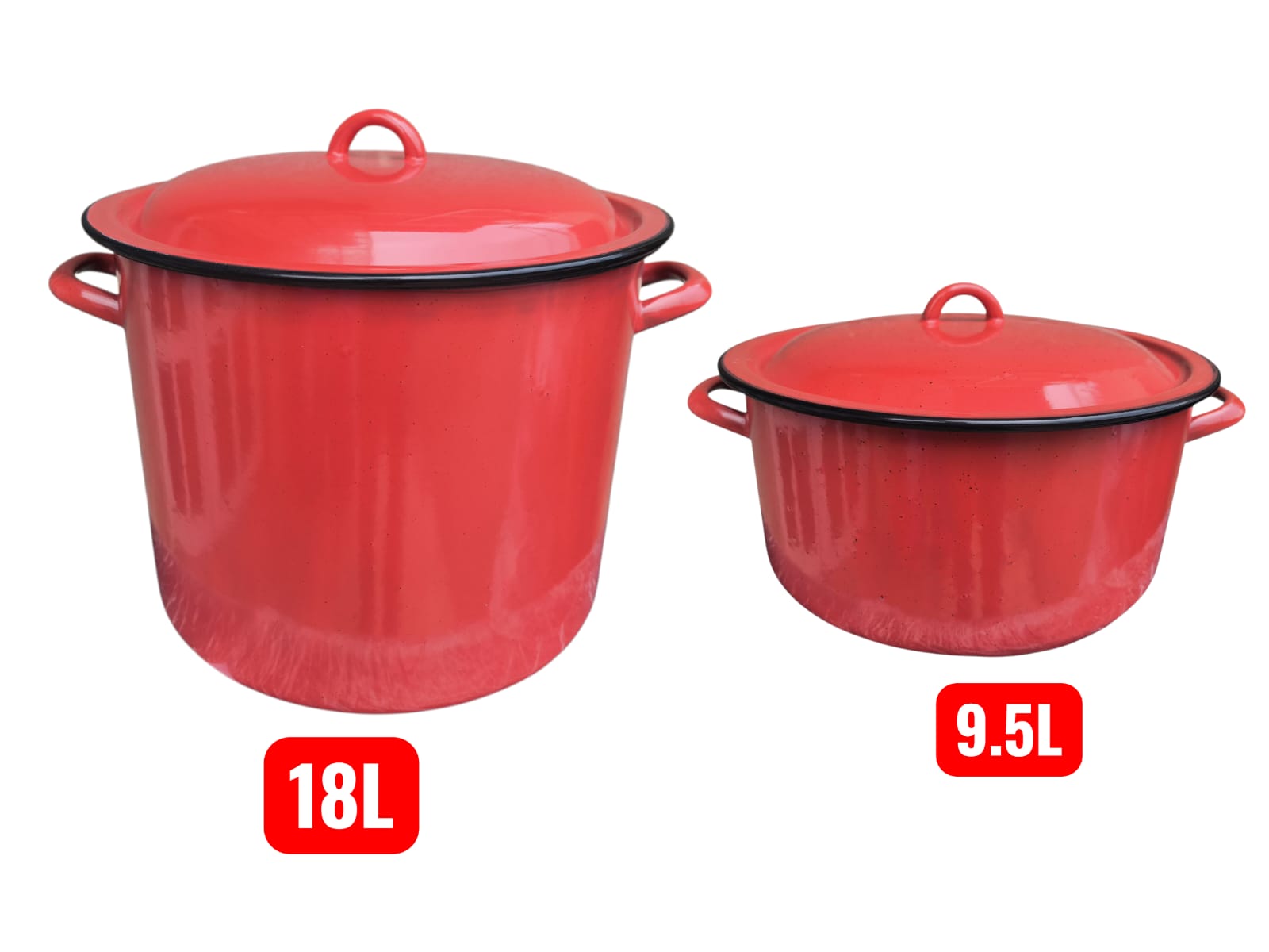 1️⃣ Oală emailată roșie cu capac – 18 litri