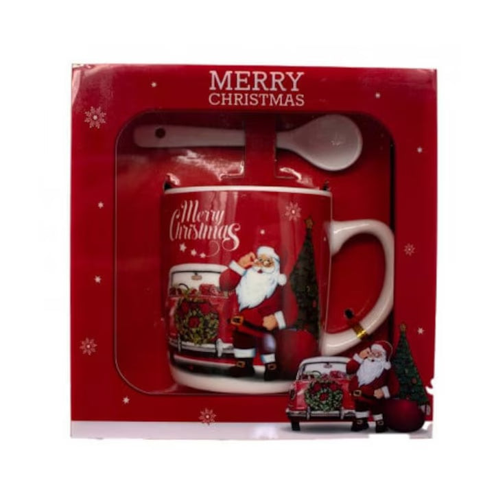 🎄 Set Cană din Ceramică cu Linguriță – Tematică de Crăciun 🎅 în Cutie Cadou Velve