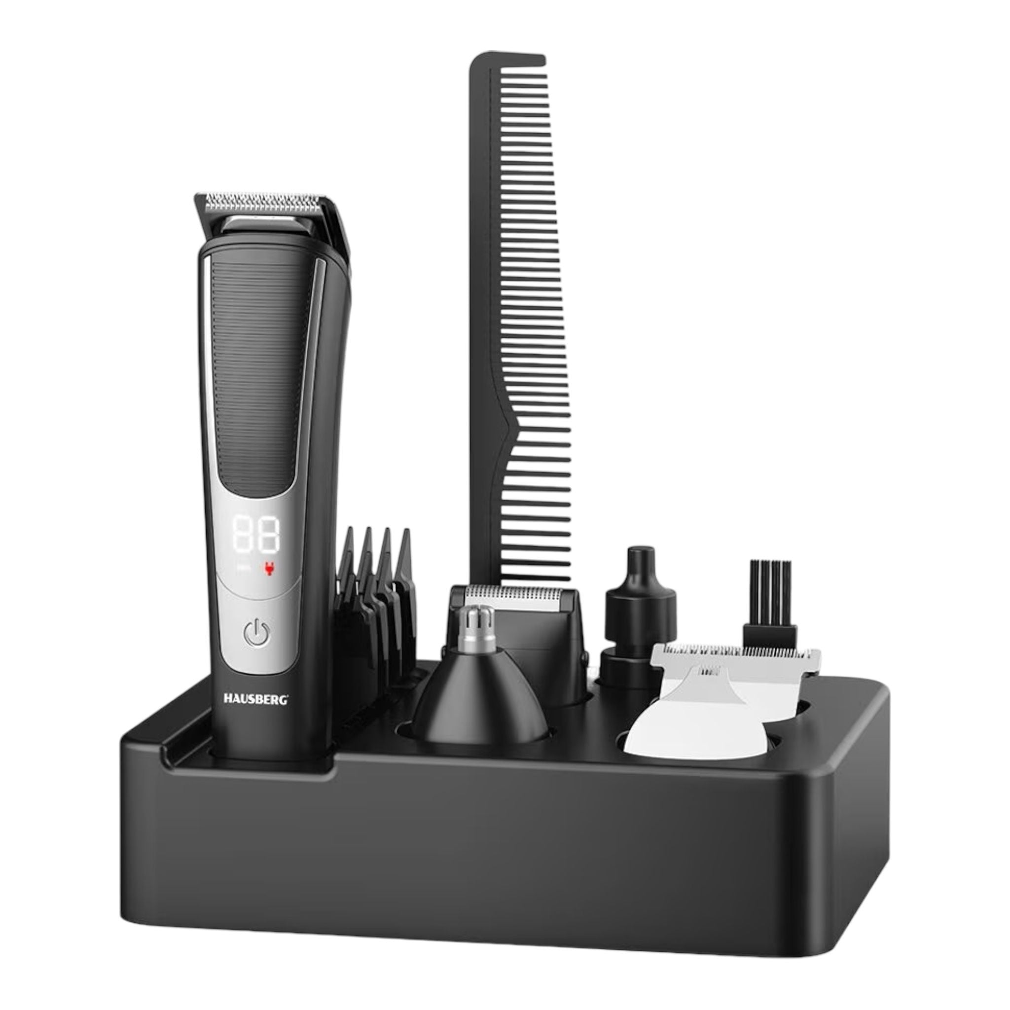 💈 Set complet aparat de tuns Hausberg – Afișaj LED, lame interschimbabile, accesorii multiple și suport de încărcare 🔋✂️