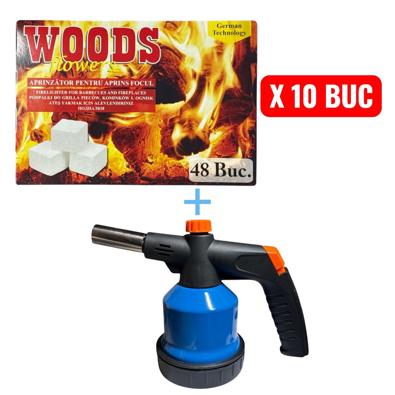 🔥 Pachet Promoțional – 10 x Aprinzător Woods (48 buc) + 1 x Arzător cu gaz