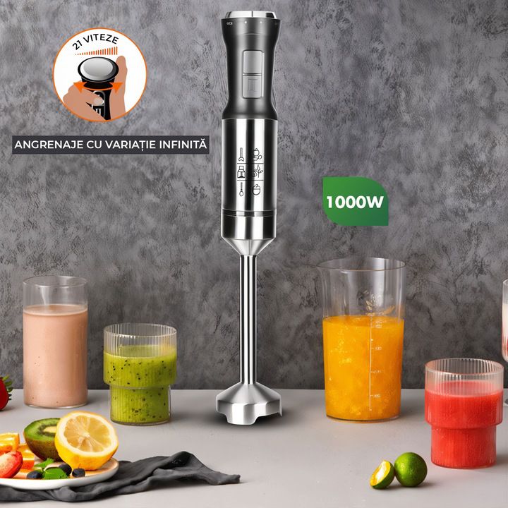 Blender de mana Hoffmans HM-8025 – 1000W, 21 viteze, picior inox 304, anti-stropire