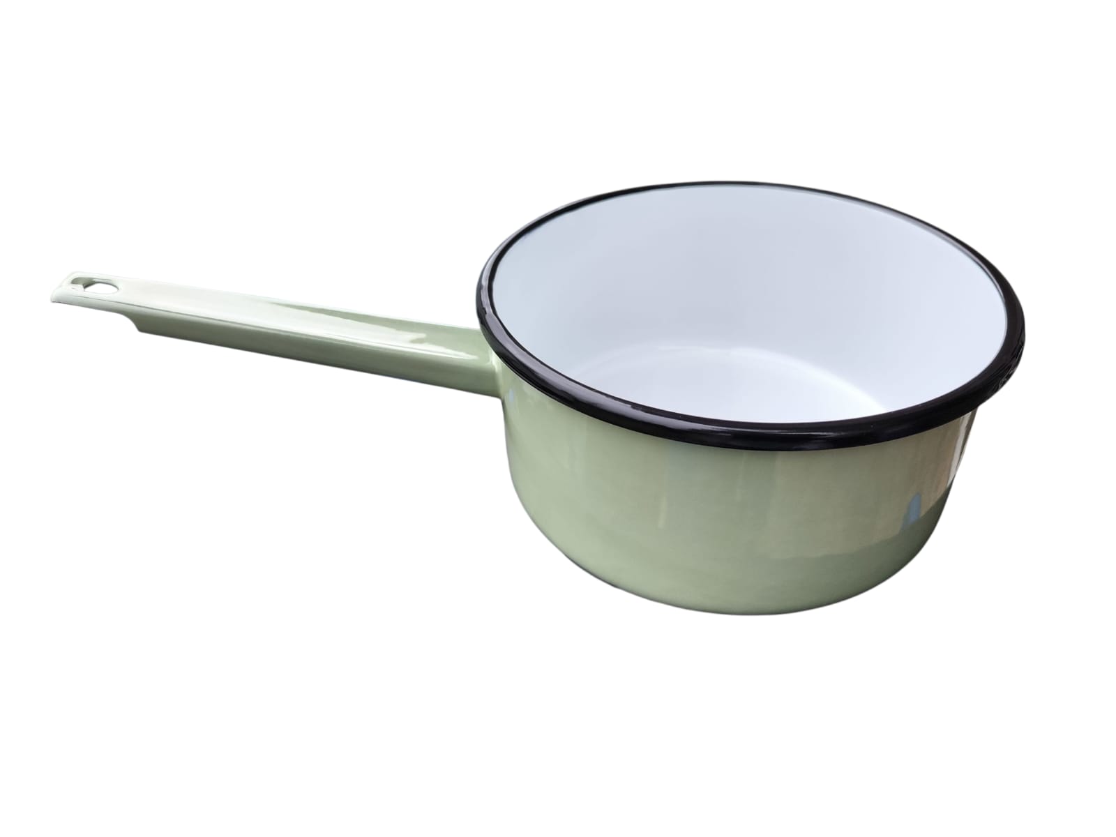 - 🫕 Cratiță Emailată cu Coada – 2.8 Litri, Culoare Verde Deschis 🌿 Fabricată în România 🫕 Cratiță Emailată cu Coada – 2.8 Litri, Culoare Verde Deschis 🌿 Fabricată în România