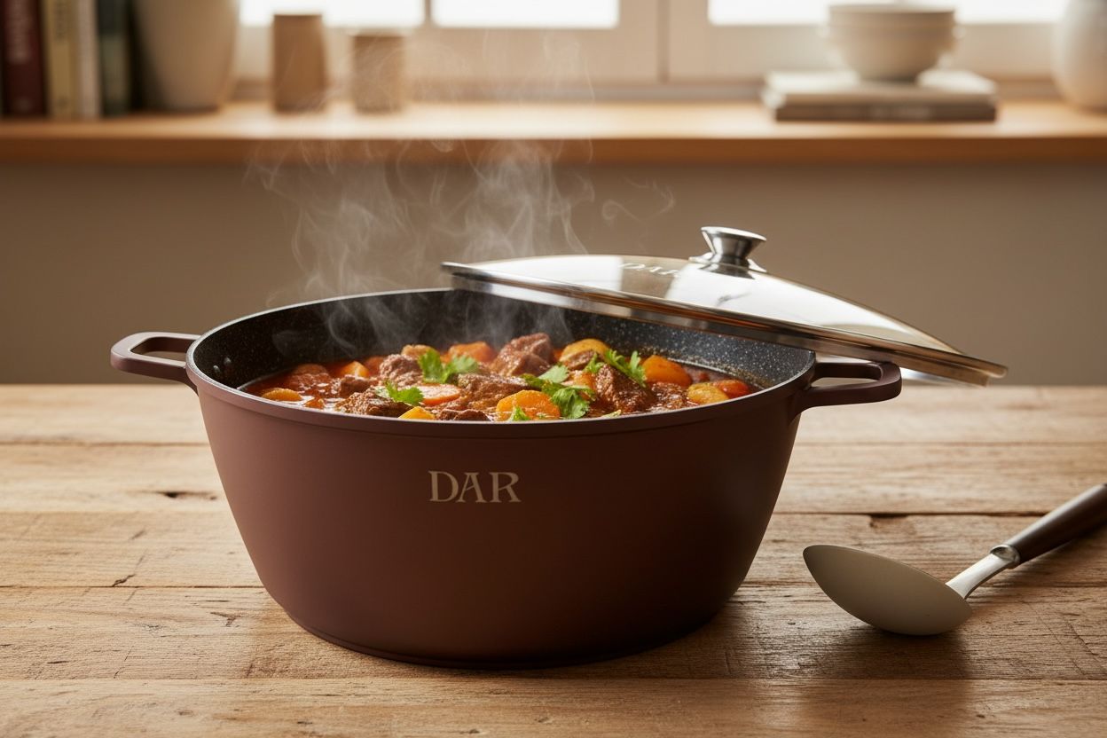 Cratița DAR de 44 cm, cu o capacitate impresionantă de 22.8 litri, este soluția ideală pentru gătit în cantități foarte mari – perfectă pentru sărbători, evenimente, restaurante sau gospodării unde se gătește mult.