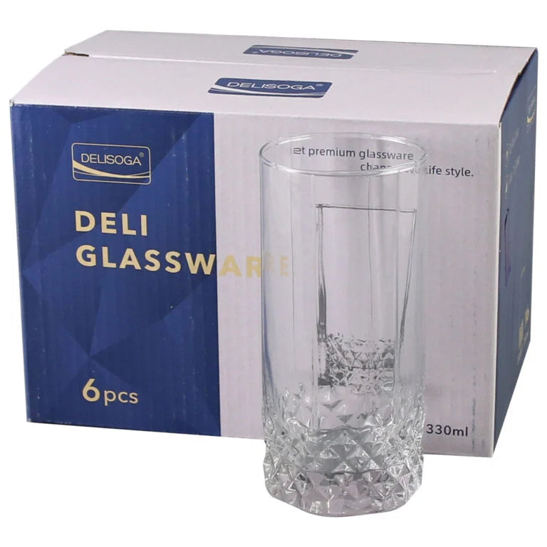 Descoperă rafinamentul și calitatea cu setul de 6 pahare Delisoga Deli Glassware, perfecte pentru servirea băuturilor răcoritoare, apei, sucurilor sau cocktailurilor!