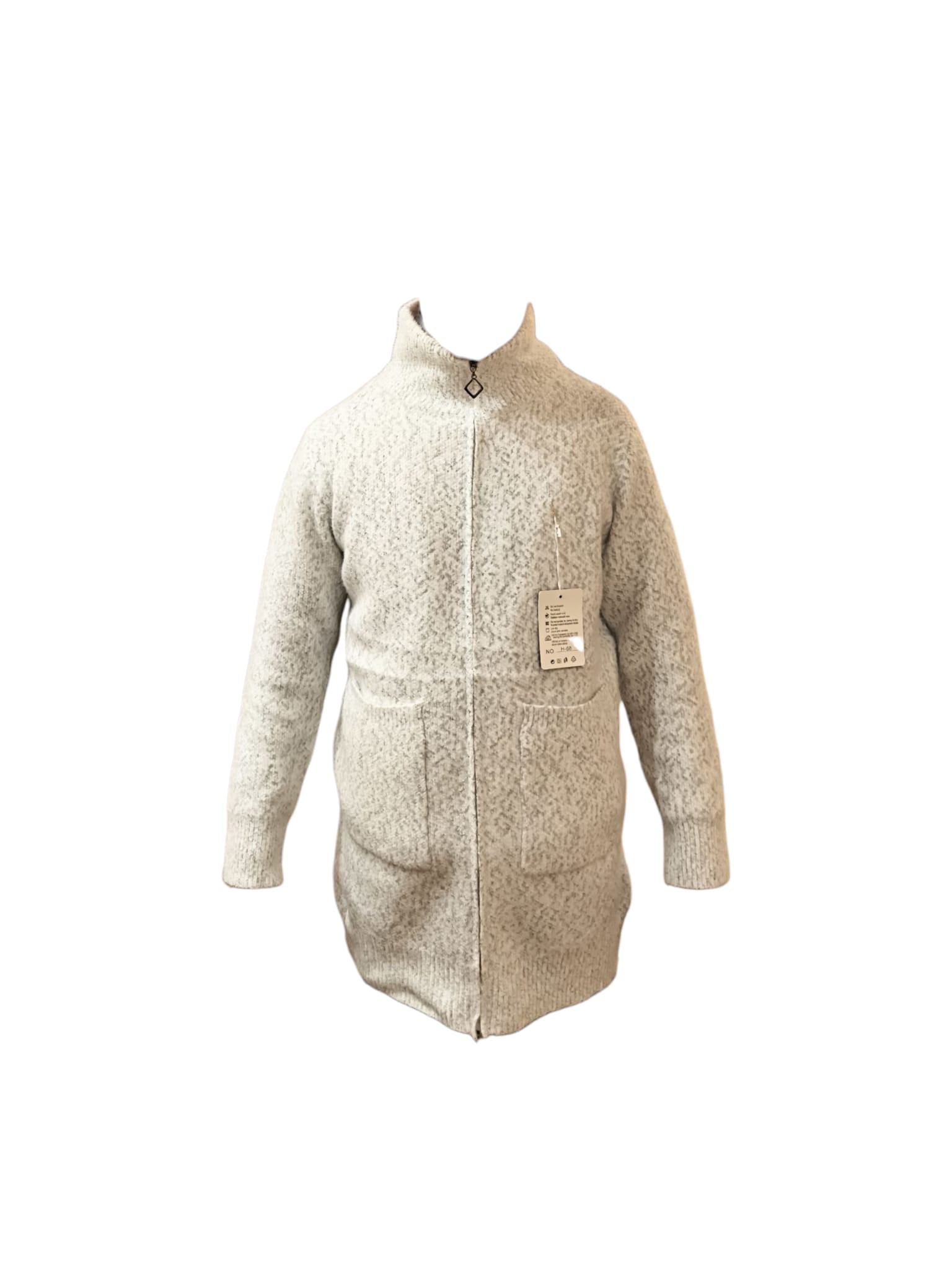 🧶 Cardigan lung tricotat crem cu guler înalt – confort și eleganță pentru sezonul rece 🤍
