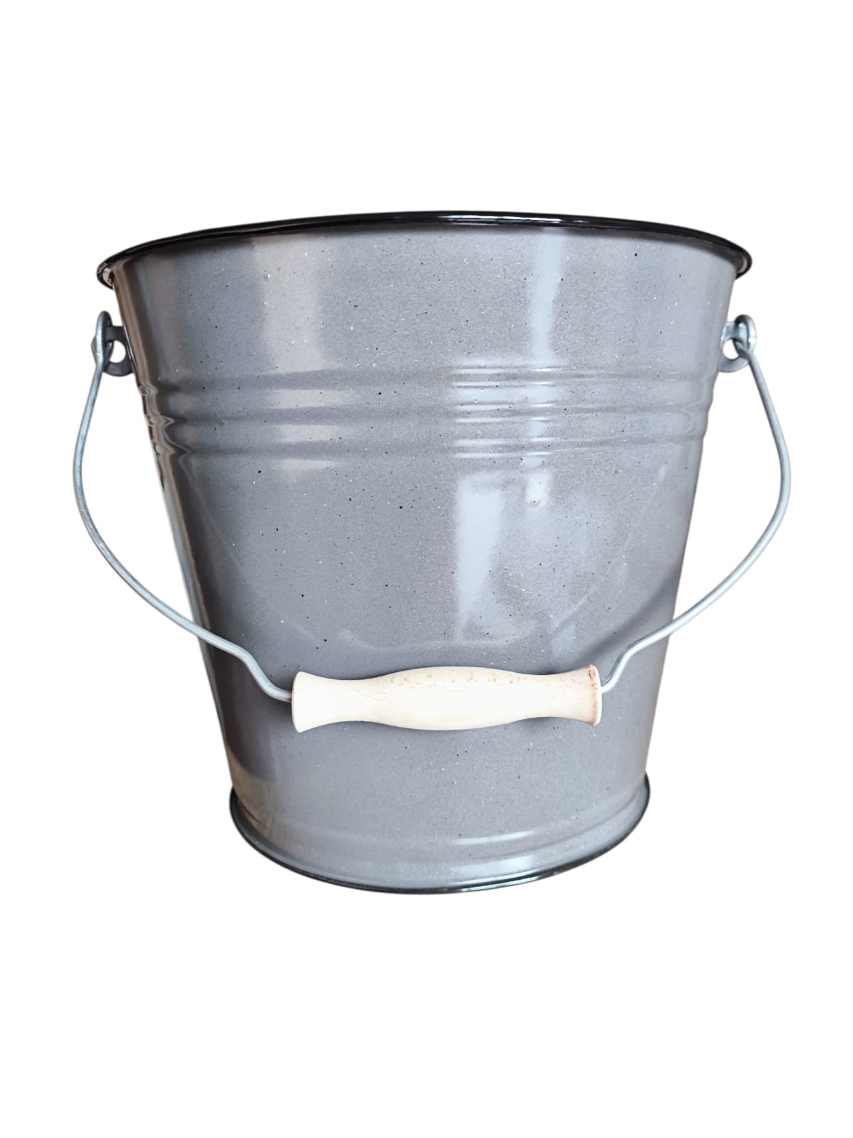 🪣 Găleată emailată gri 10 litri – diametru 28 cm, cu mâner din lemn