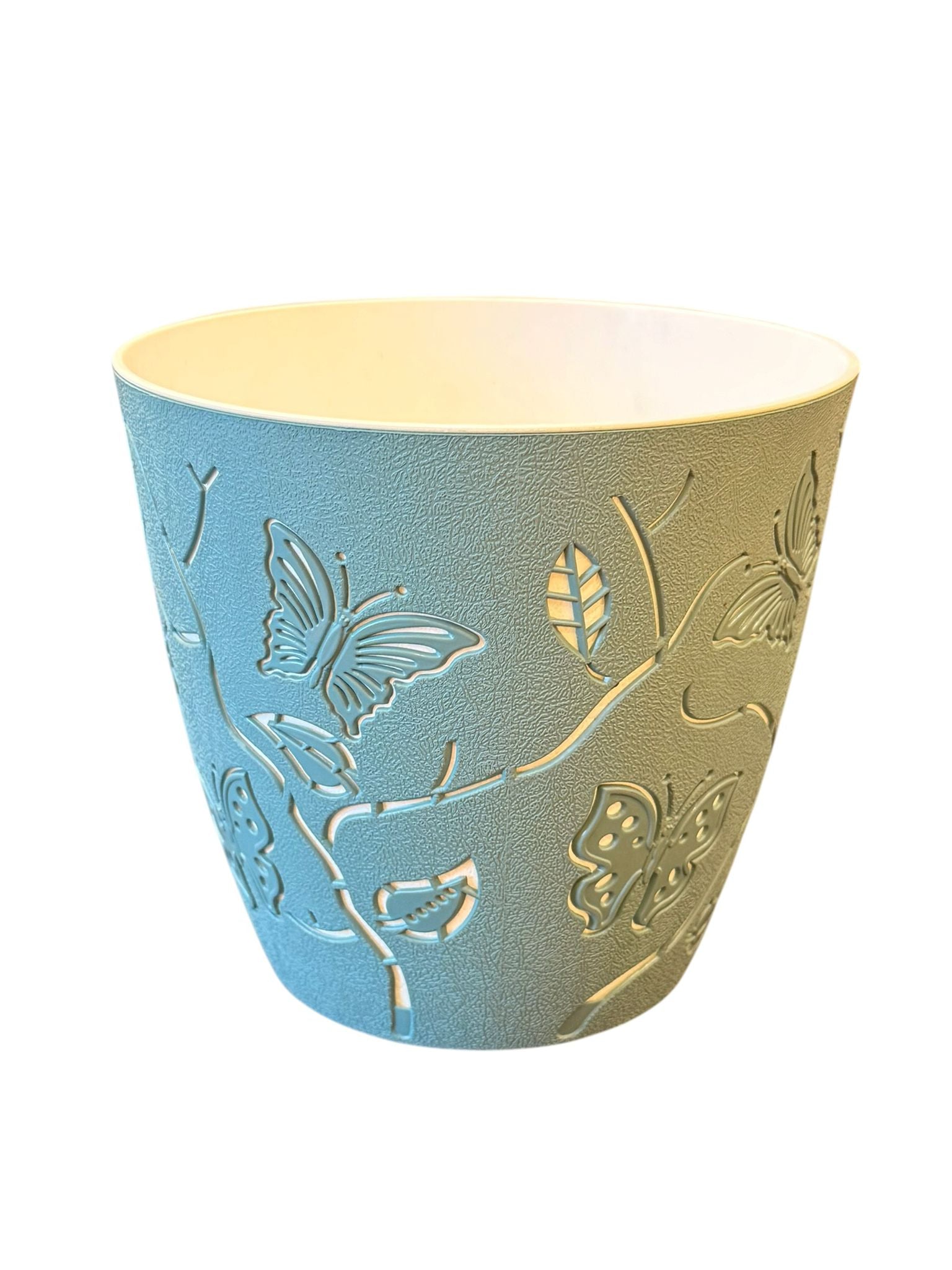 Inveselește decorul casei tale cu acest ghiveci decorativ realizat intr-o nuanta placuta de bleu, decorat cu un model elegant cu fluturi si ramuri ornamentale. Este ideal pentru plante naturale, flori artificiale sau diverse aranjamente decorative, fiind potrivit pentru orice tip de spatiu.