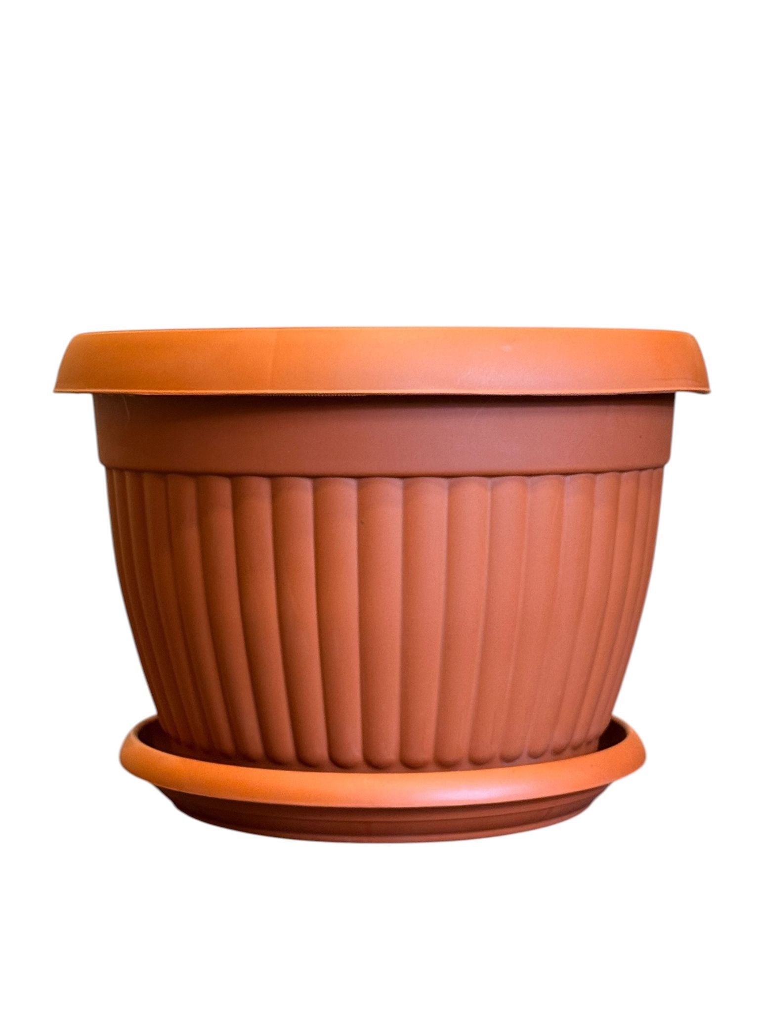 Fabricat din plastic rezistent, acest ghiveci este usor, durabil si simplu de manevrat. Designul sau clasic, cu model decorativ striat si finisaj in nuanta teracota, se potriveste usor in orice decor.