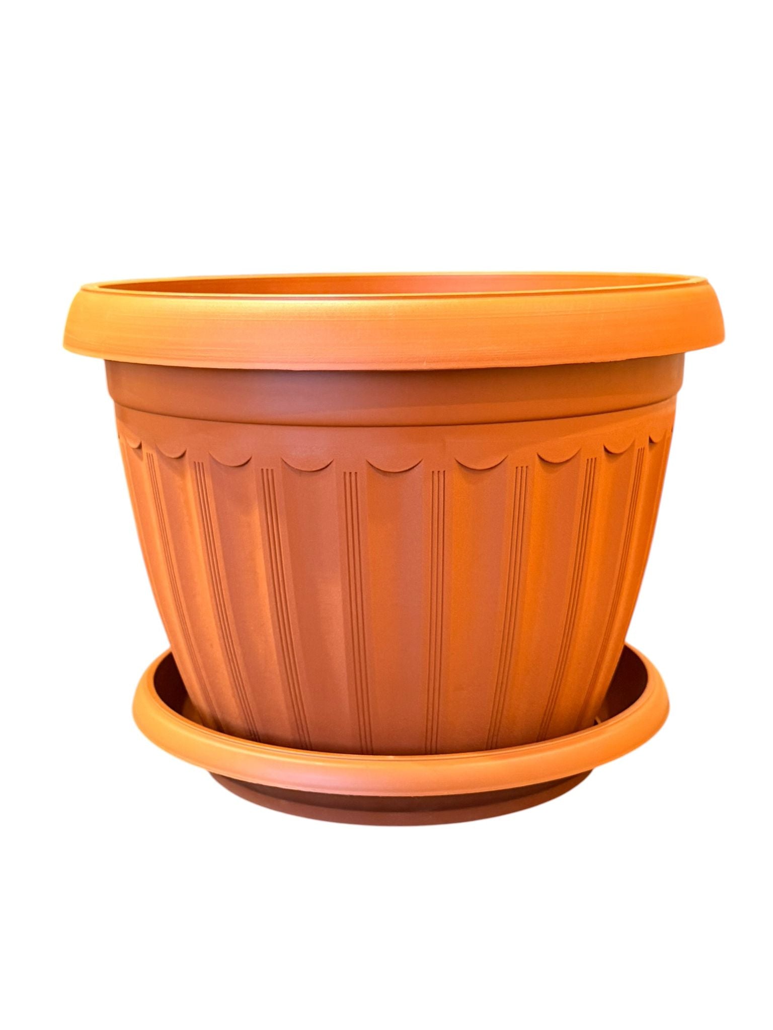 - Ghiveci decorativ cu farfurie Infinity teracota 36 cm 14.5 litri Ghiveci decorativ cu farfurie Infinity teracota 36 cm 14.5 litri