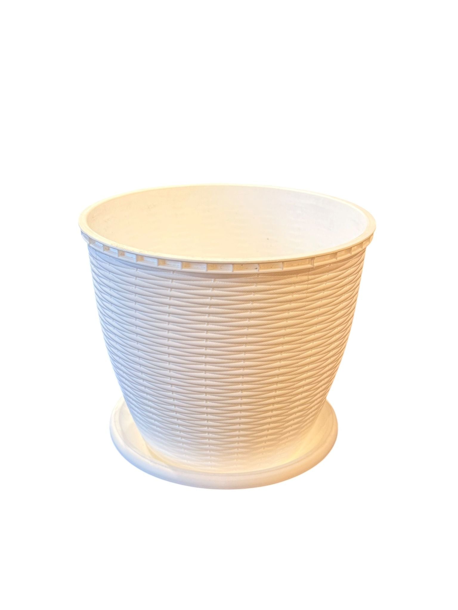 Ghiveci decorativ ratan alb cu farfurie 2.75 litri 17.5 cm