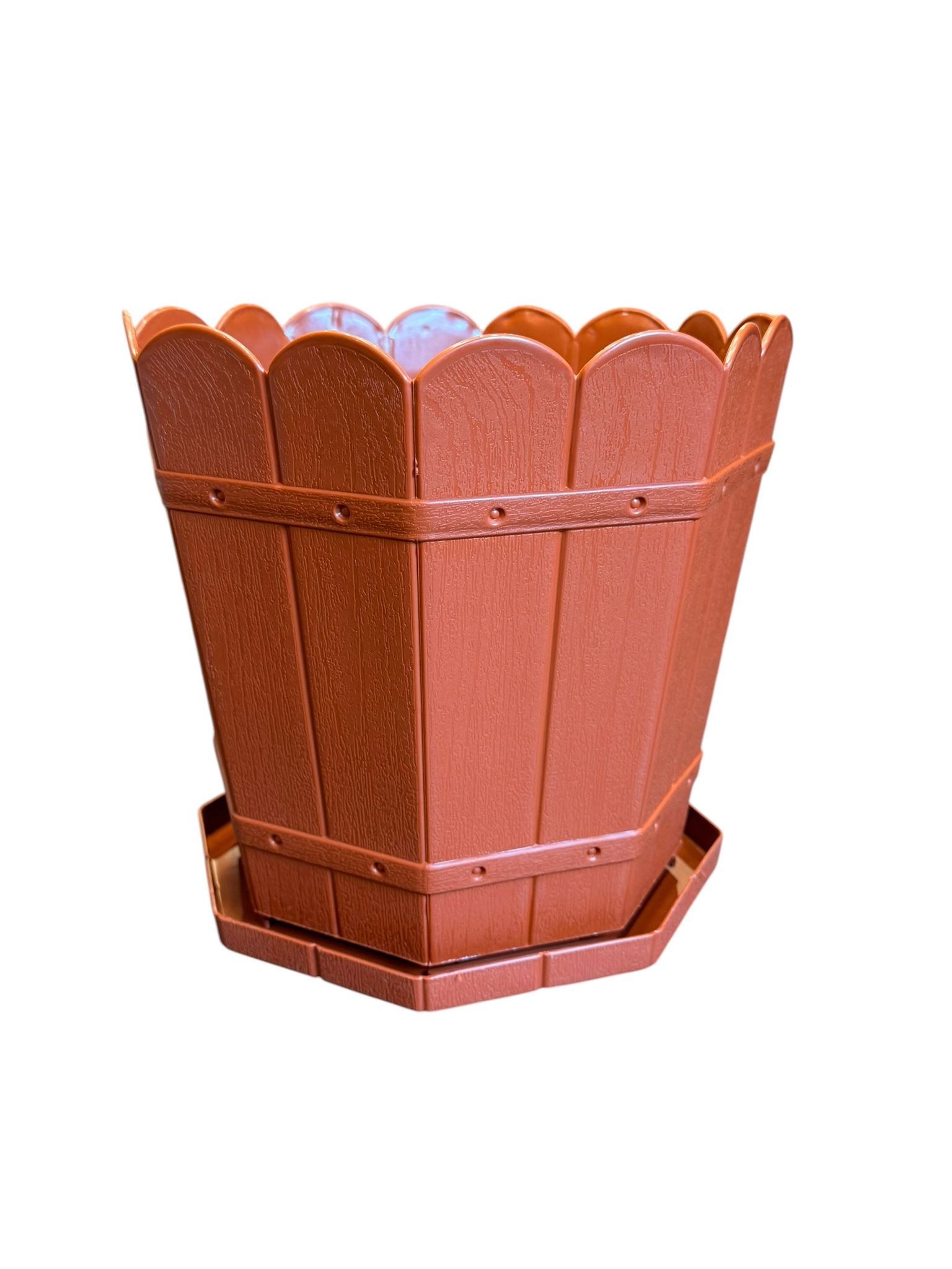 Ghiveci plastic decorativ 12 L cu tava model rustic teracota