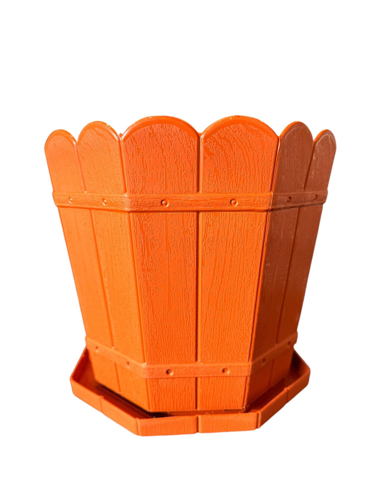 Ghiveci plastic decorativ 5 L cu tava model rustic teracota