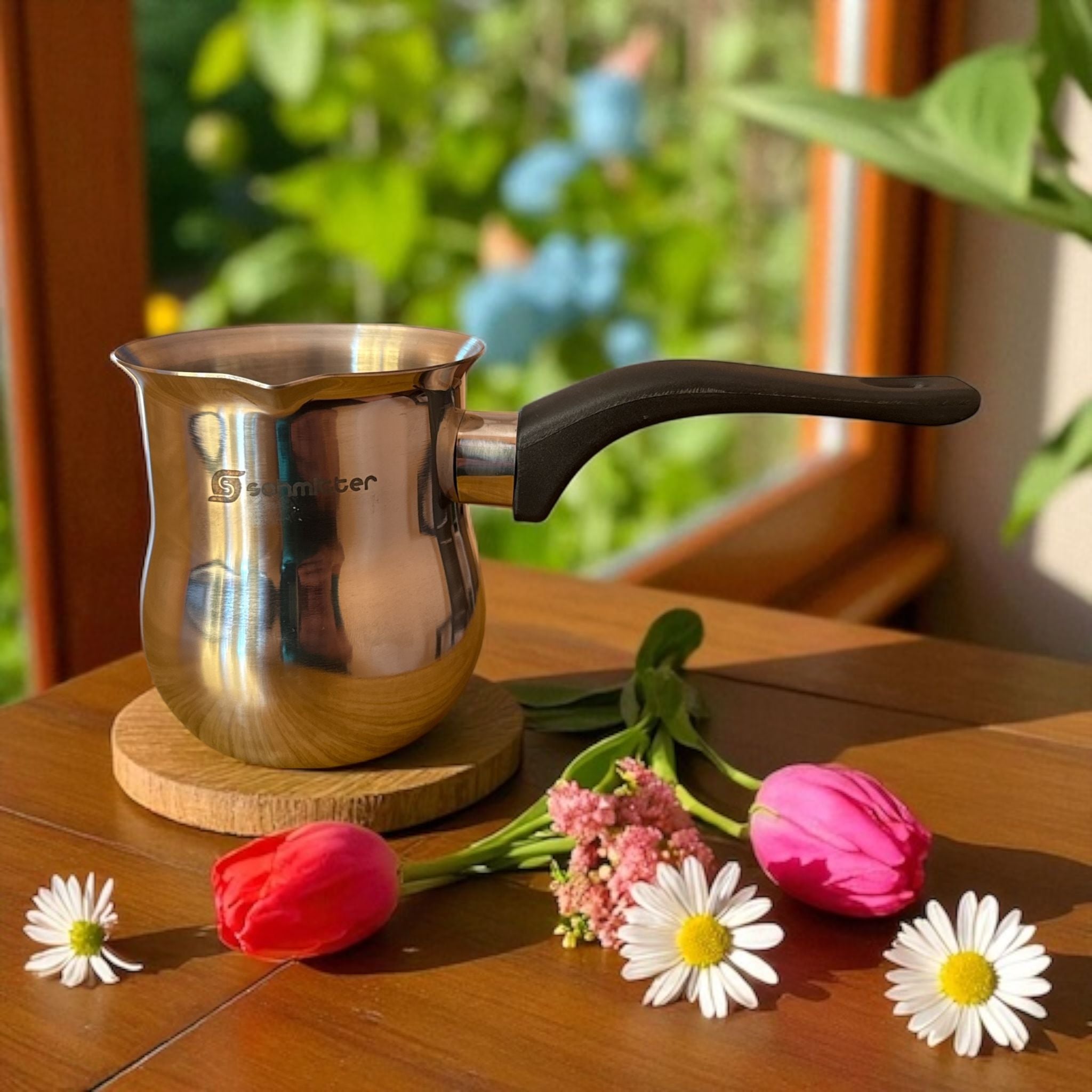 Savurează aroma cafelei așa cum trebuie, cu ibricul din inox Schmitter, de 9 cm și 0,55 L. Realizat din inox de înaltă calitate, acest ibric este rezistent, elegant și ușor de utilizat. Designul ergonomic cu mâner confortabil asigură turnarea fără efort, iar dimensiunea compactă îl face perfect pentru 1-2 porții de cafea sau ceai.