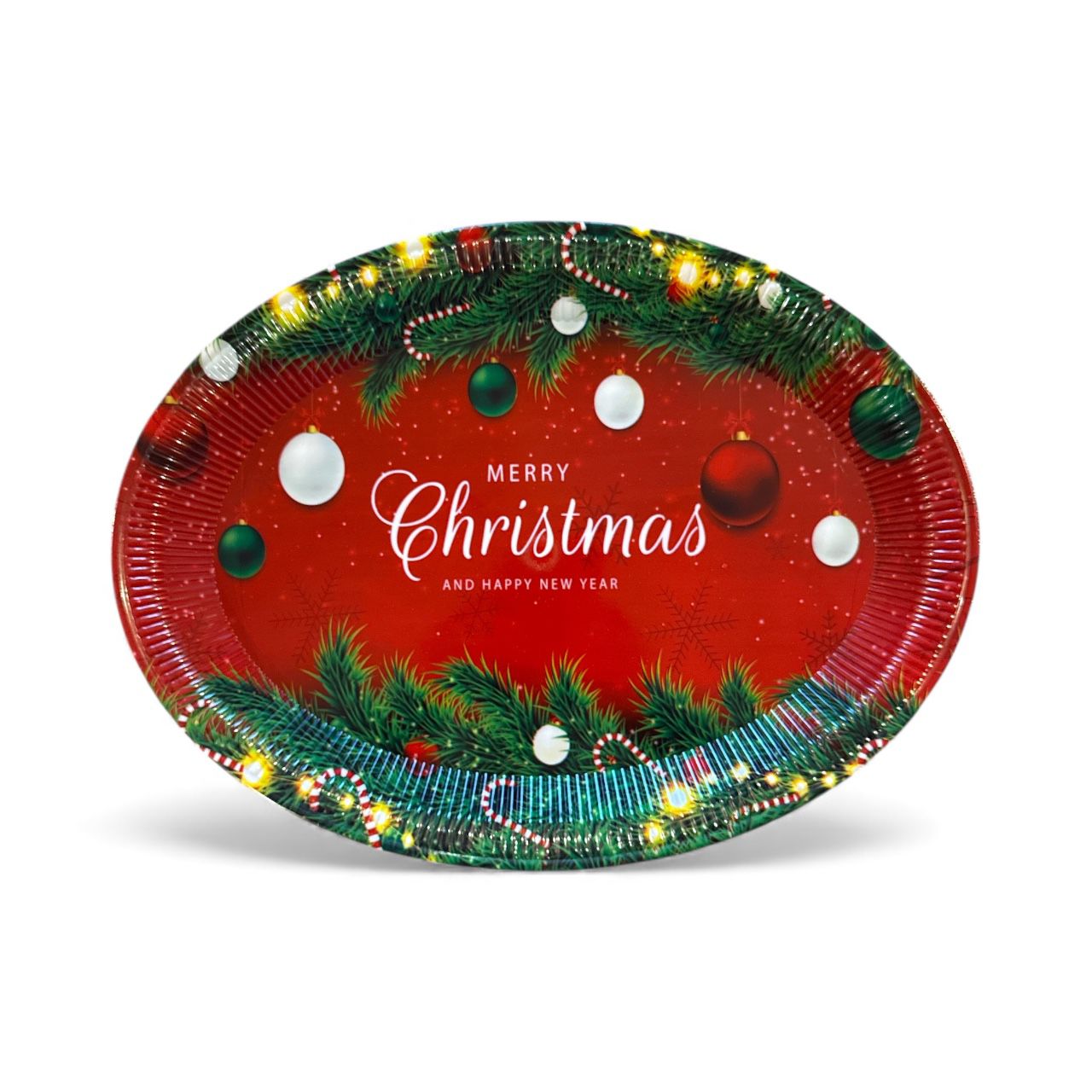 Adaugă spiritul sărbătorilor în servirea preparatelor cu această tavă de servire din plastic, decorată în tematică de Crăciun. Cu un design festiv în nuanțe vibrante de roșu și verde, globuri, brad și inscripția "Merry Christmas and Happy New Year", tava este perfectă pentru masa de Crăciun, petreceri, colinde sau pentru a servi dulciuri și aperitive.