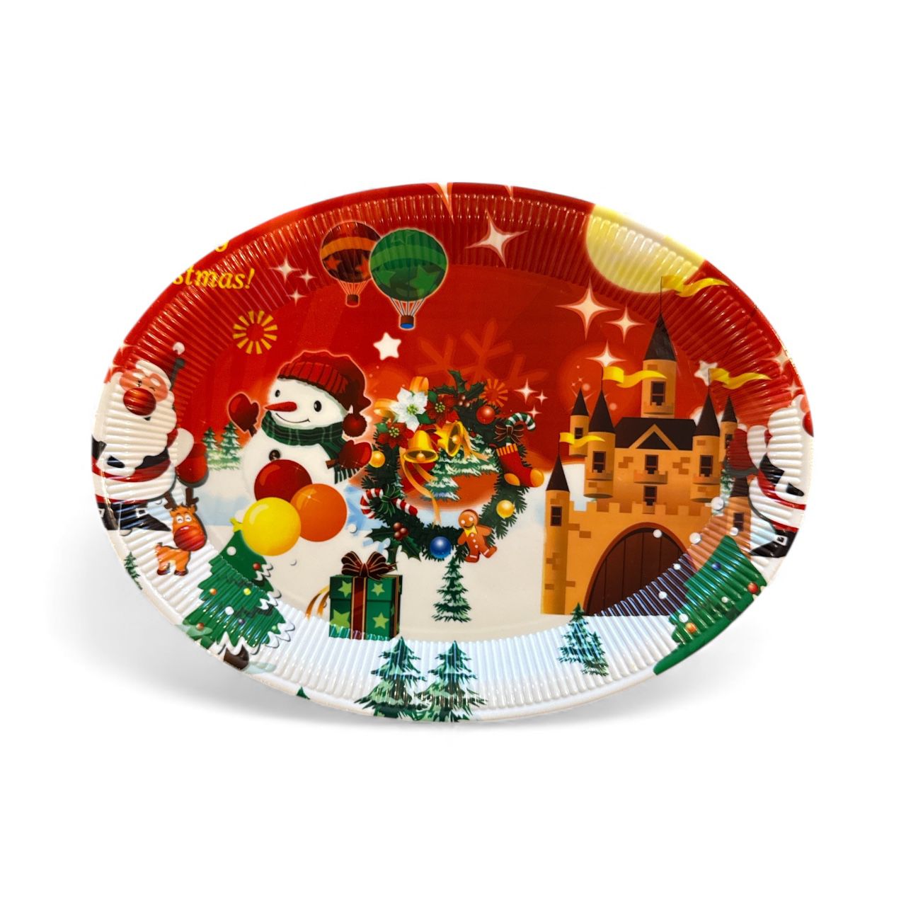 Tavă de Servire din Plastic – Model Crăciun cu Om de Zăpadă & Castel – 34 × 25,5 cm